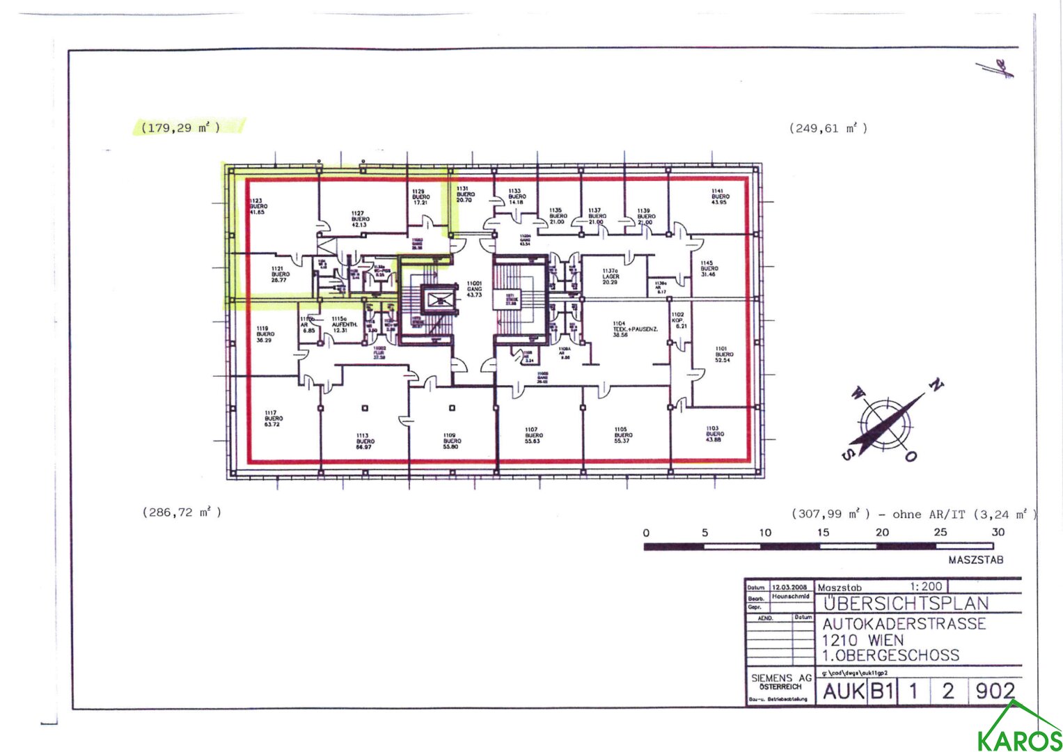 BT 1: OG 466,01 m² bestehend aus 286,72 m² + 179,29 m²