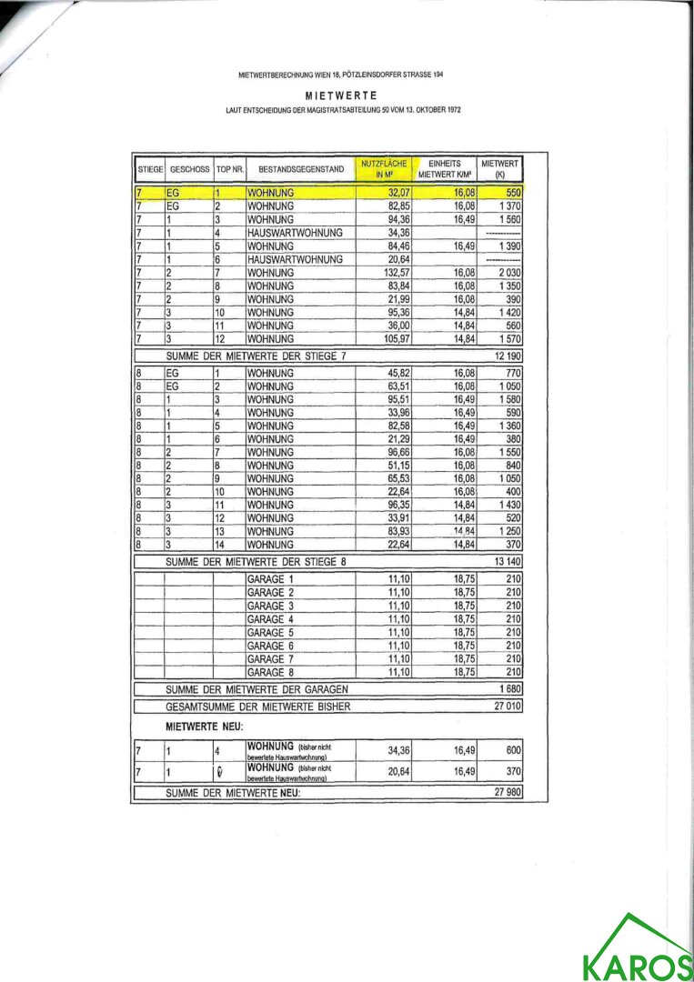 - Jahresmietertrag dzt.: € 4.841,52 (netto) – „Hauptmietzins & Entgelt für mitvermietete Einrichtung