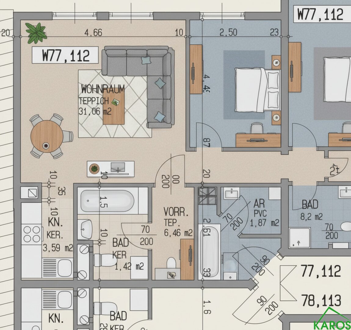 Die Wohnung ist nicht nur ein Schmuckstück, sondern bietet auch praktische Vorteile. Ein Personenaufzug erleichtert den Zugang zur Wohnung, und eine Garage steht Ihnen zur Verfügung – ein unschätzbarer Vorteil in der Stadt.