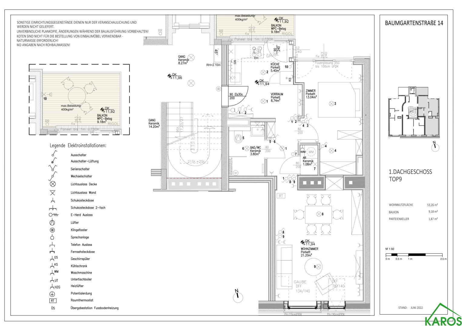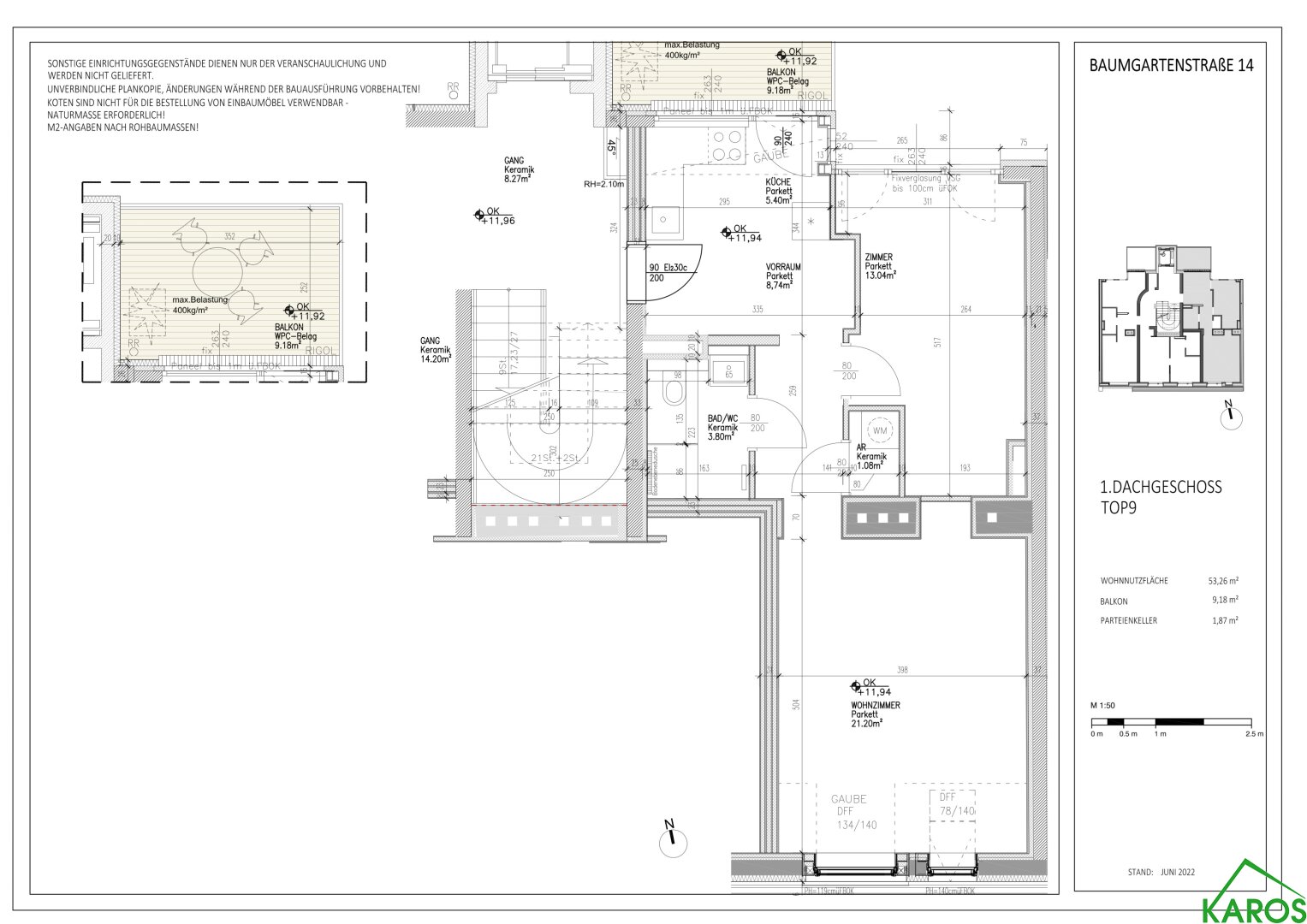 Die gemütliche DG-Wohnung mit einer Nutzfläche von 53,26 m² befindet sich im 4. Liftstock (1. DG) eines kleinen Altbaus und beeindruckt durch die exklusive Ausstattung und eine Balkonfreifläche mit 9,18 m².