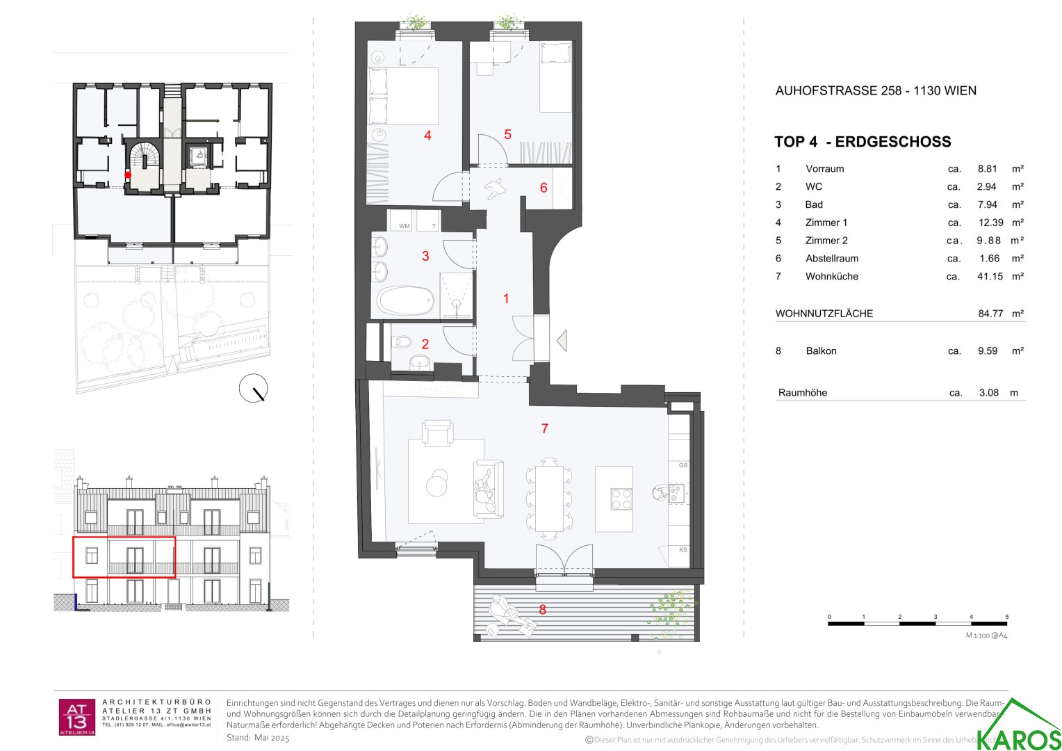 Das nahe Auhof Center bietet Einkaufsmöglichkeiten, Gastronomie und medizinische Versorgung in Gehweite. Zudem sind die Klinik Hietzing sowie das St. Josef Krankenhaus Wien schnell erreichbar. Diese Lage vereint gehobene Wohnqualität mit urbaner Infrastruktur und vielfältigen Freizeitmöglichkeiten.
