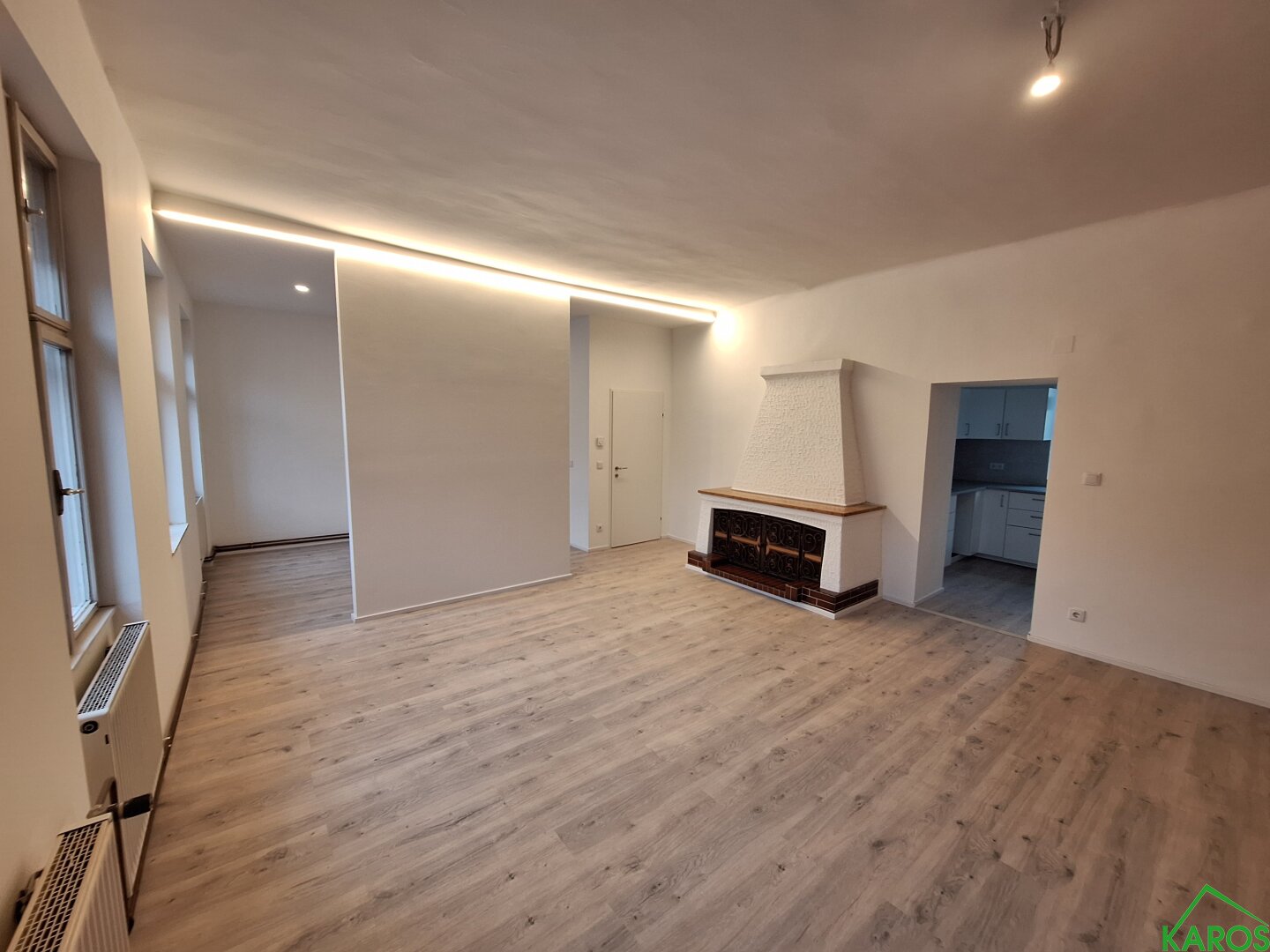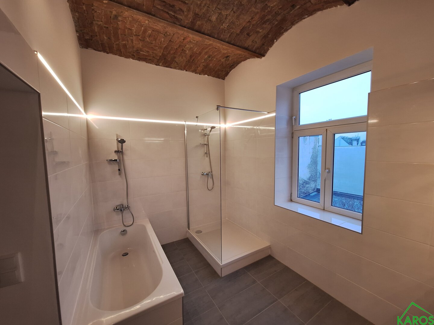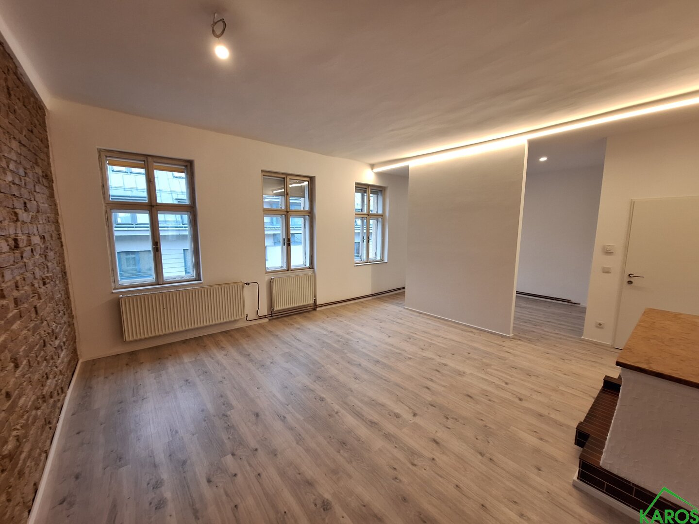 Die exklusive 2-Zimmer-Altbauwohnung mit 76,38 m² wurde kürzlich saniert und besticht durch Backsteinelemente im Industriestil.