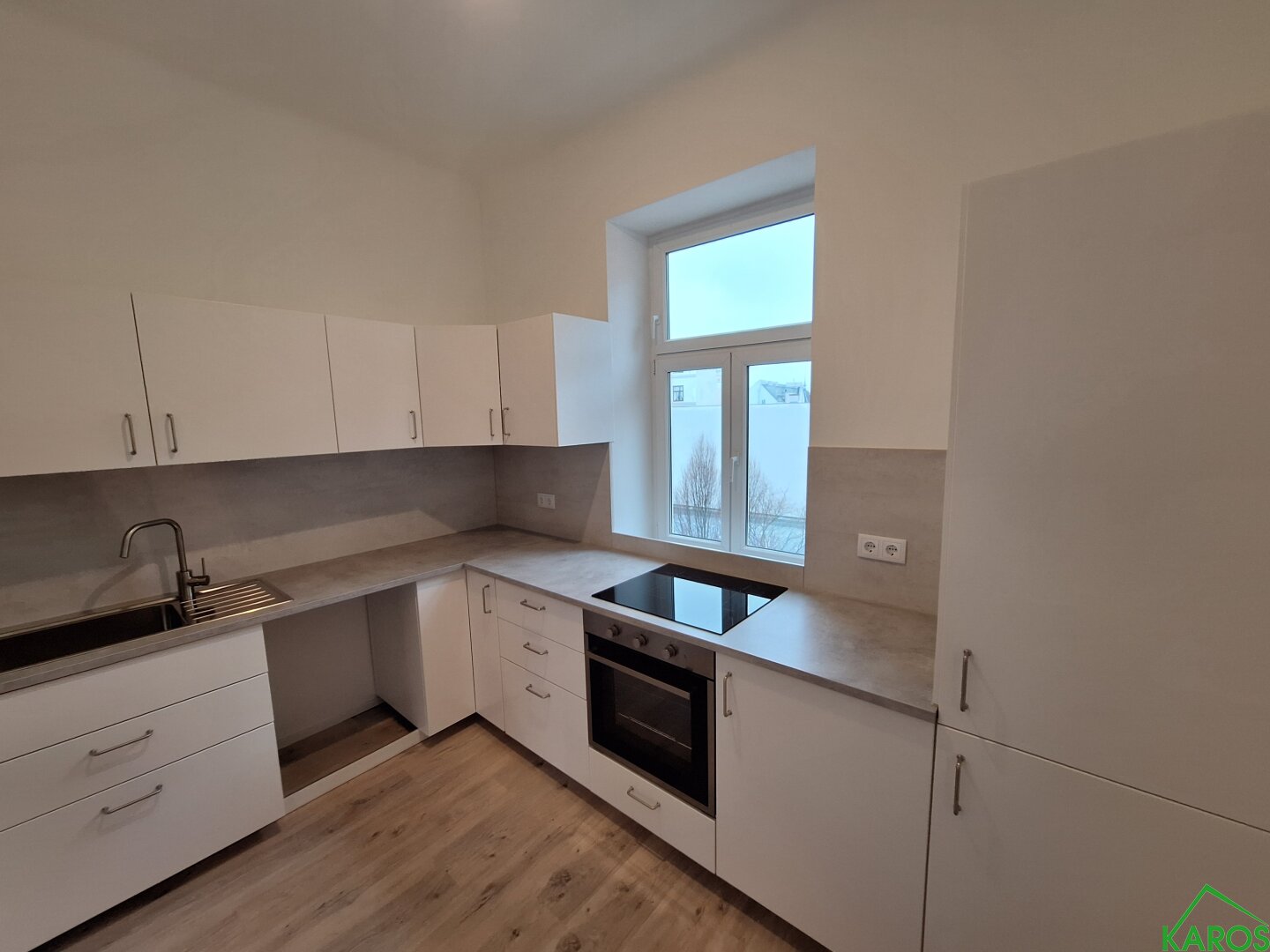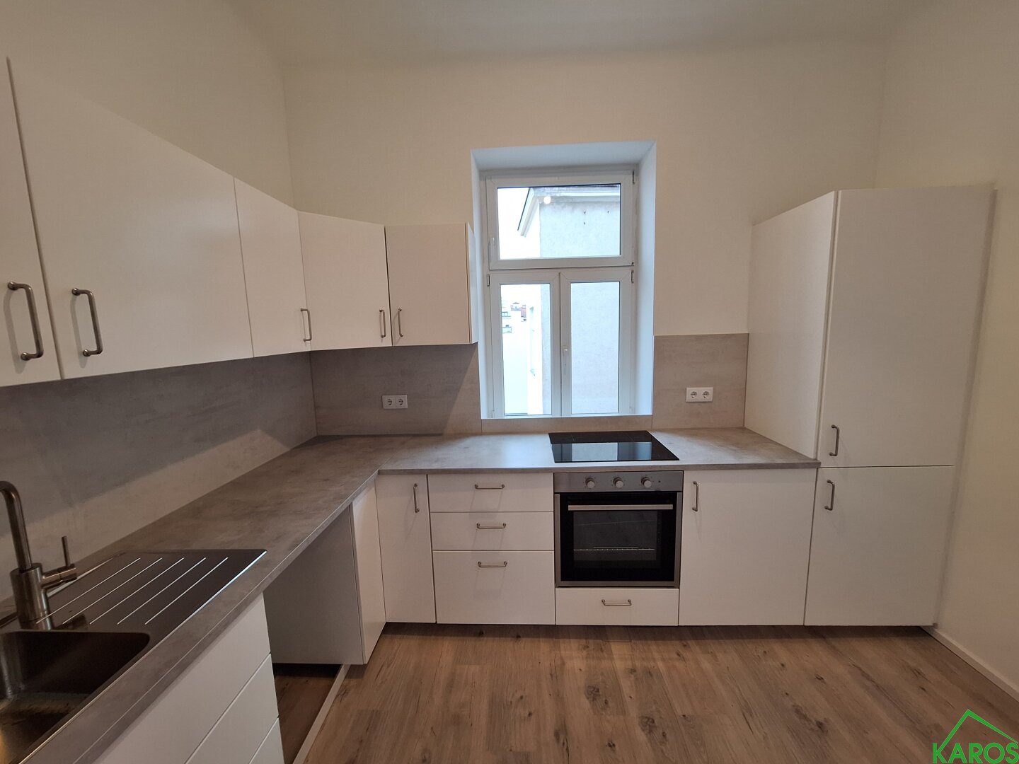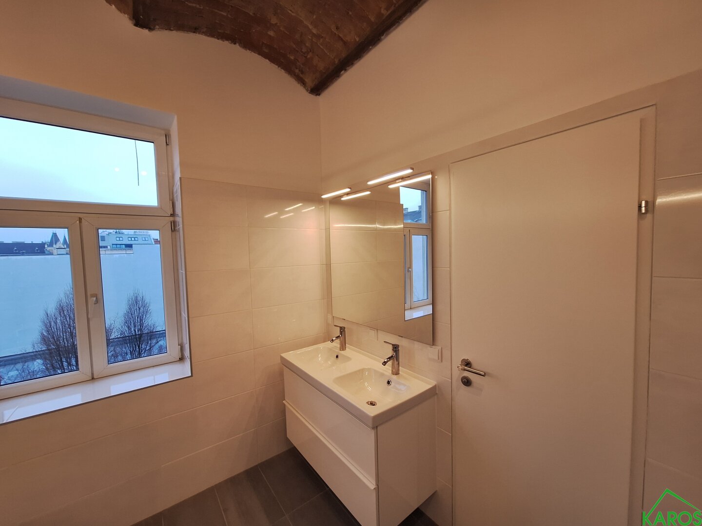 Die exklusive 2-Zimmer-Altbauwohnung mit 76,38 m² wurde kürzlich saniert und besticht durch Backsteinelemente im Industriestil.