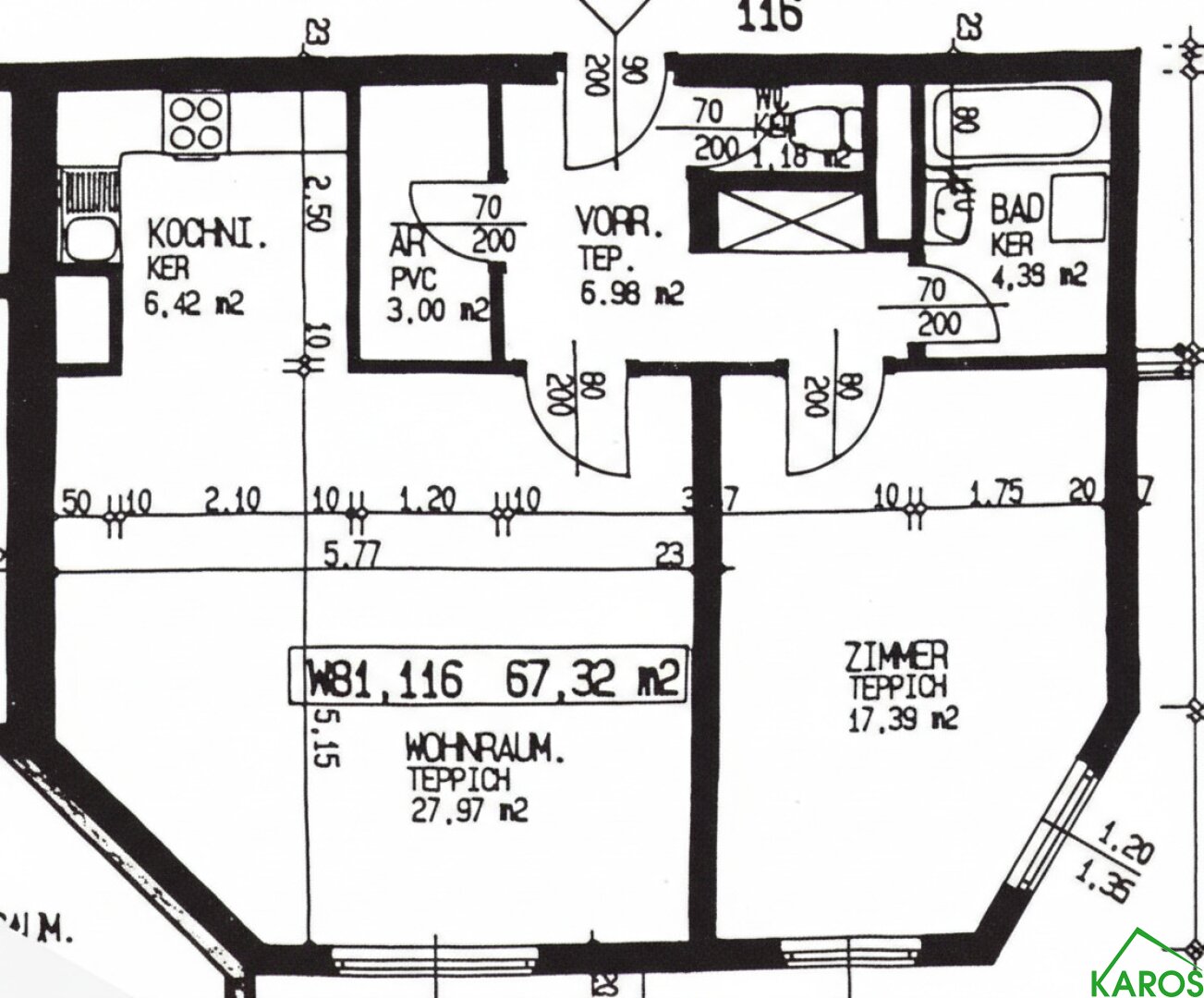 Die charmante 2‑Zimmer‑Wohnung mit großzügigen 66,84 m² befindet sich im 3. Liftstock und bietet einen wunderschönen Blick auf den Waldmüllerpark.