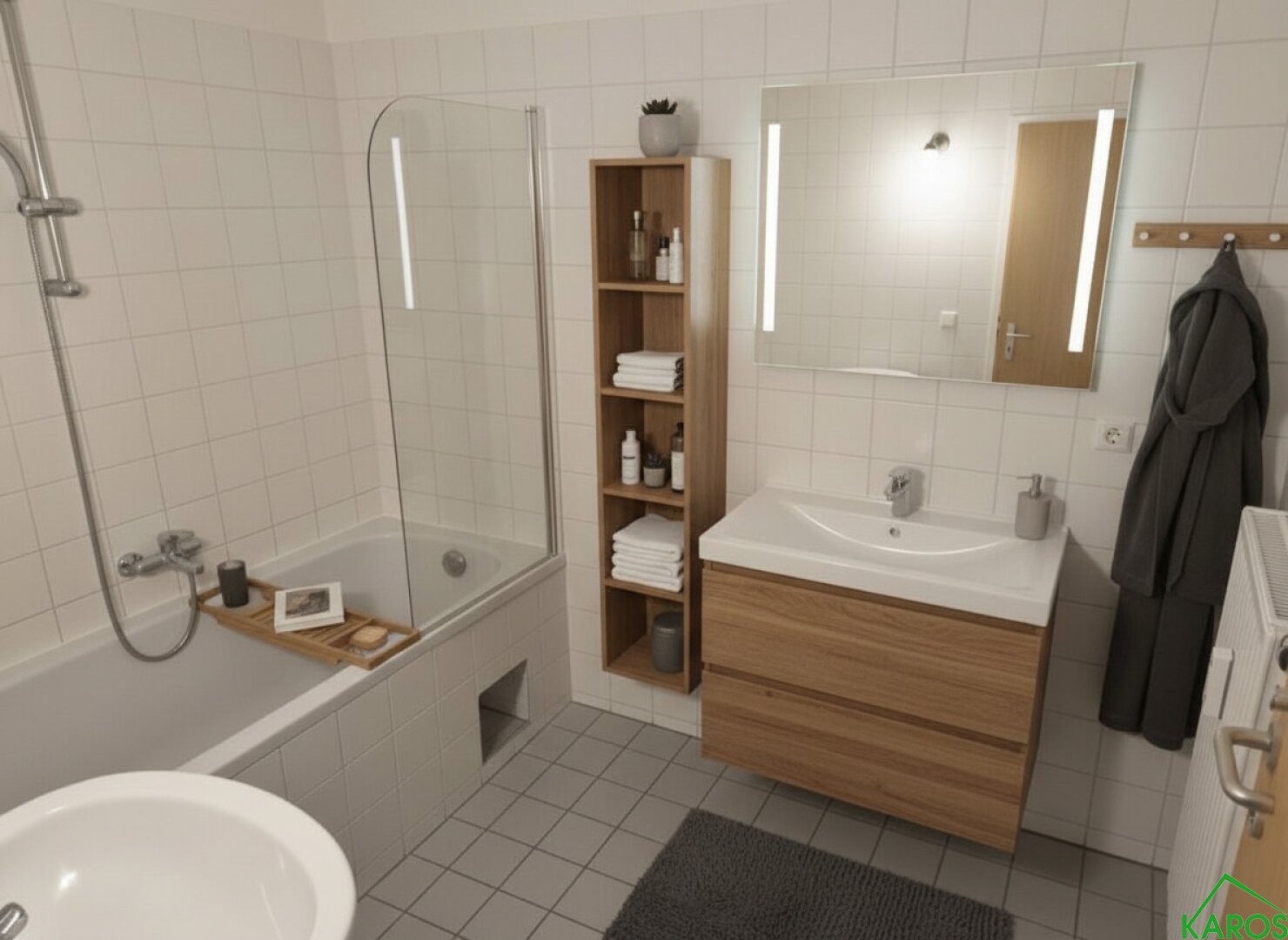 Die Wohnung besticht durch ihren hochwertigen Laminatboden und die angenehme Wärme der Fernwärme sowie die zentrale Heizungsanlage, die Ihnen auch in den kälteren Monaten ein behagliches Zuhause garantiert. Das Badezimmer ist mit einer Badewanne ausgestattet – der perfekte Ort zum Entspannen nach einem langen Tag.