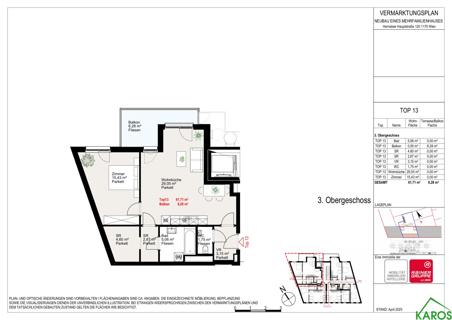 Kerndaten: 61,71 m² / 2 Zimmer / 1170 Wien / Gesamtmiete brutto: € 1.328,67