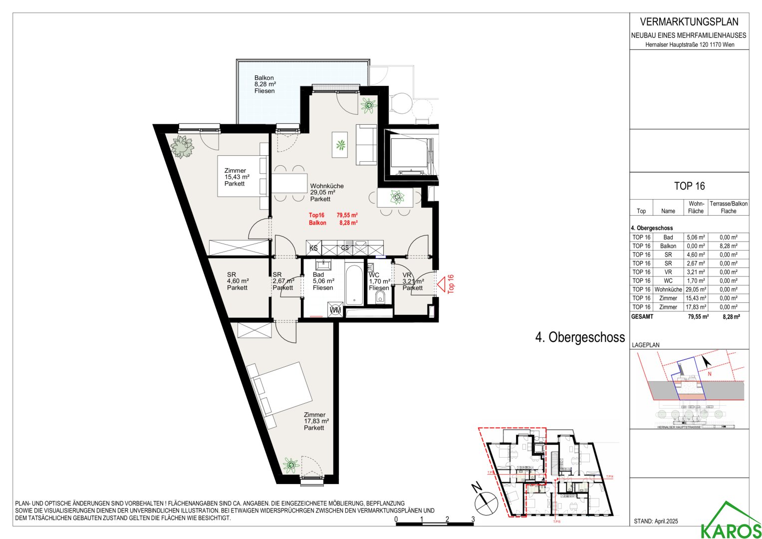 Kerndaten: 79,55 m² / 3 Zimmer / 1170 Wien / Gesamtmiete brutto: € 1.737,75