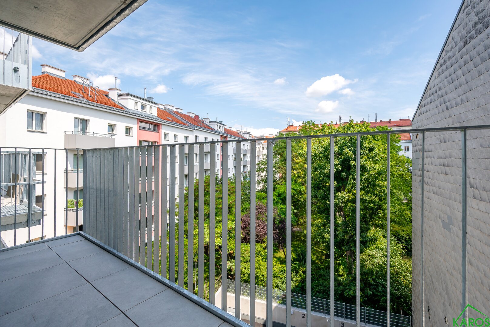- Sonnenschutz: außenliegende Raffstore-Lamellen