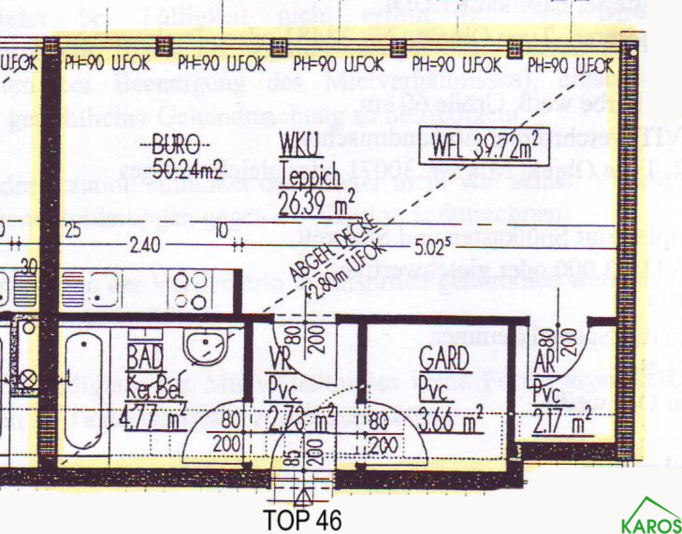 Durch ein zentrales Vorzimmer gelangt man in den Abstellraum, der auch als Garderobenraum bzw. Schrankraum genutzt werden kann, ein Wannenbad mit WC, sowie in den Wohn-/Schlafraum mit integrierter Küchenzeile (E-Herd, Abwaschkasten und Kühlschrank). Weiters bietet ein zusätzlicher Abstellraum genügend Stauraum.