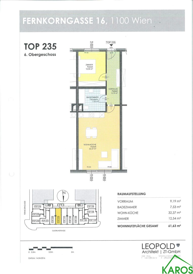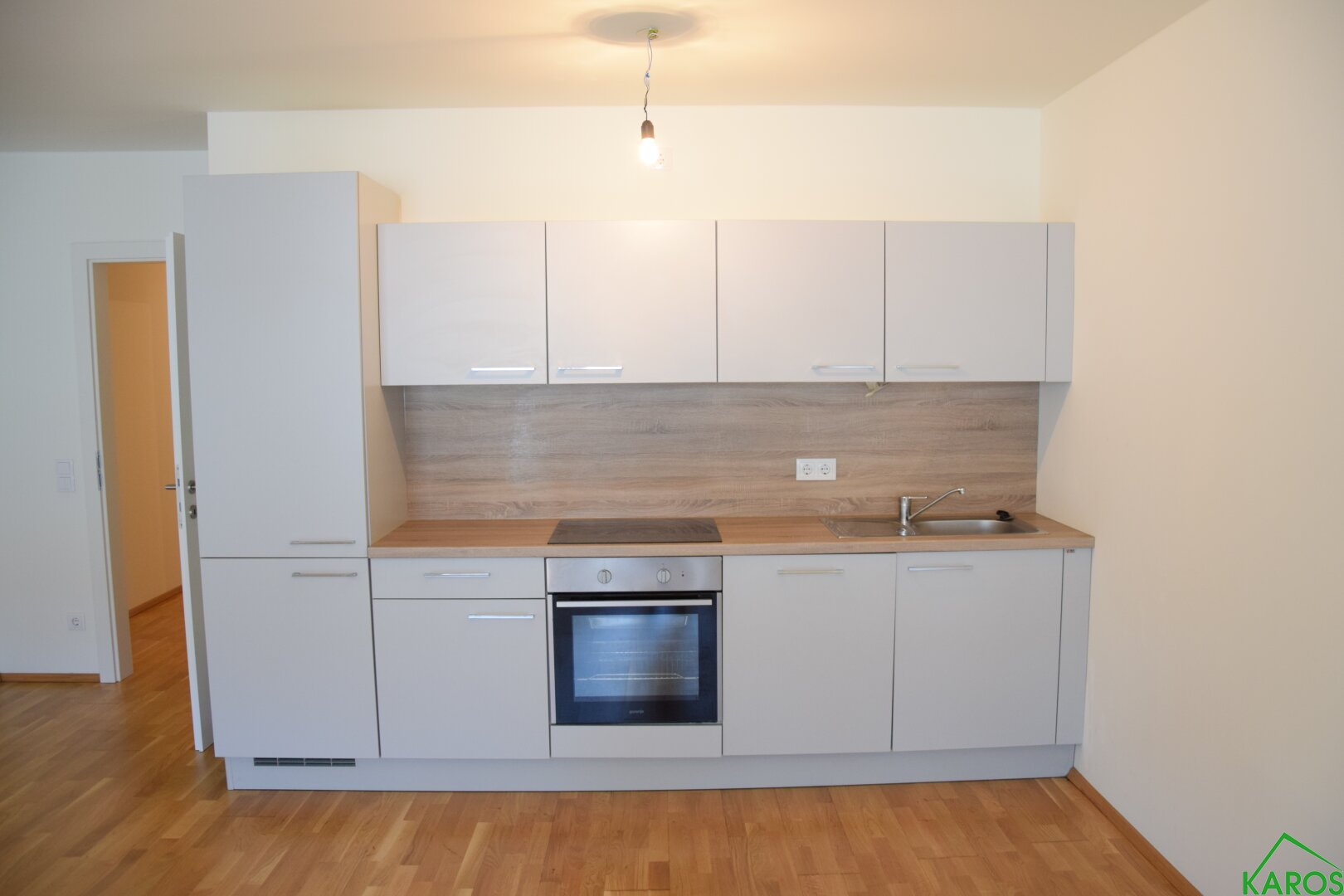 Zur befristeten Anmietung gelangt die 66,68 m² große Neubauwohnung, zentral begehbar, bestehend aus Vorraum, Bad mit Wanne, Wohnküche und Schlafzimmer.