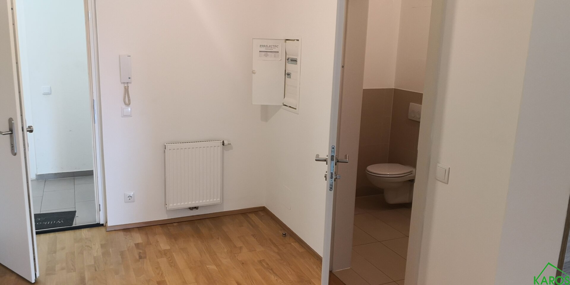 Die Räume sind weiß gemalt und mit hochwertigen Parkettböden bzw. Feinsteinzeug ausgestattet.