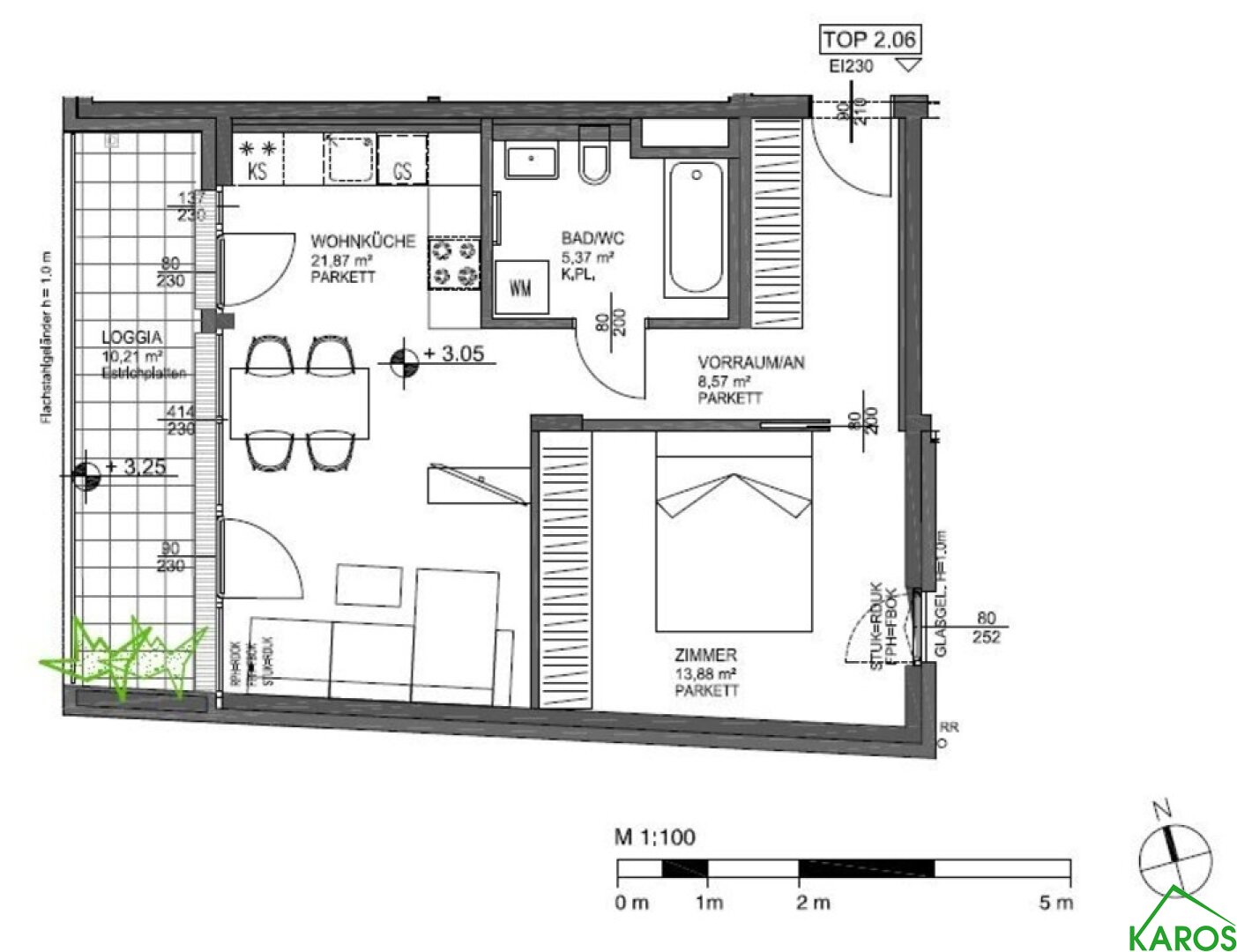 Die Wohnung besticht durch einen durchdachten Grundriss, der lichtdurchflutete Räume schafft und ein angenehmes Wohnambiente garantiert. Der Parkettboden verleiht den Zimmern eine warme und elegante Atmosphäre. Die moderne Einbauküche ist bestens ausgestattet und lädt zum gemeinsamen Kochen und Verweilen ein. Ein besonderes Highlight ist der sonnige Balkon, der zum Entspannen im Freien einlädt und Platz für gemütliche Stunden an der frischen Luft bietet.