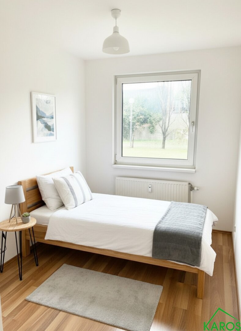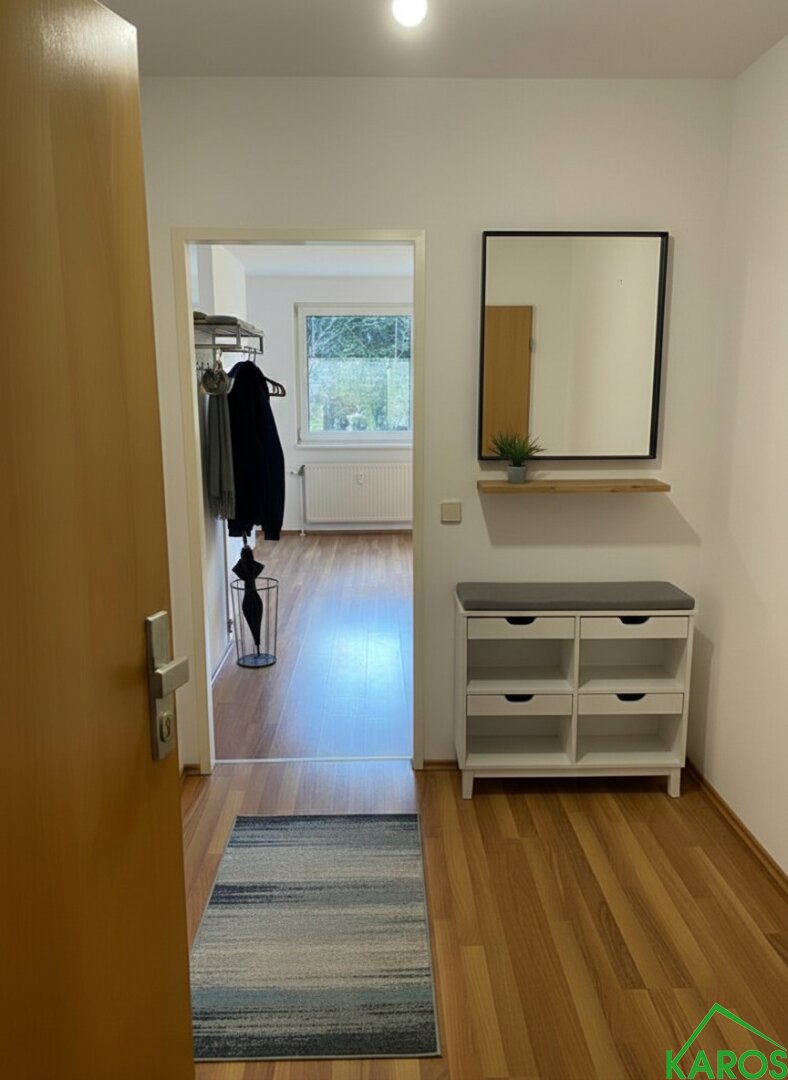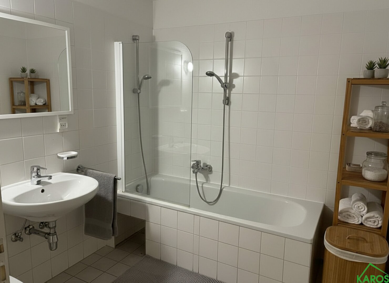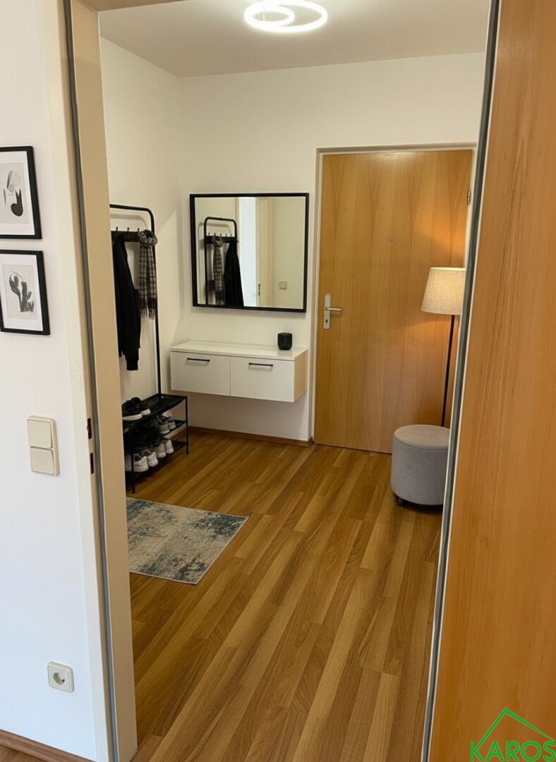 Der Wohnraum ist mit hochwertigem Laminatboden ausgestattet, der für eine warme und wohnliche Atmosphäre sorgt. Das Badezimmer überzeugt mit eleganten Fliesen und einer zeitlosen Gestaltung.