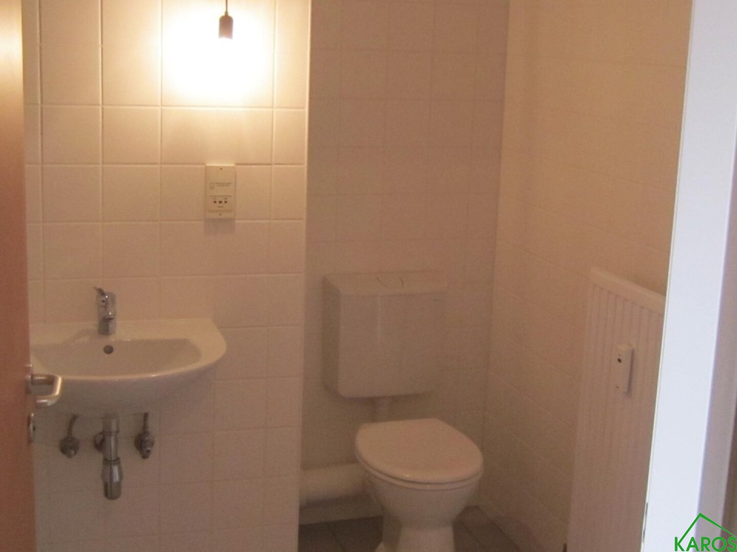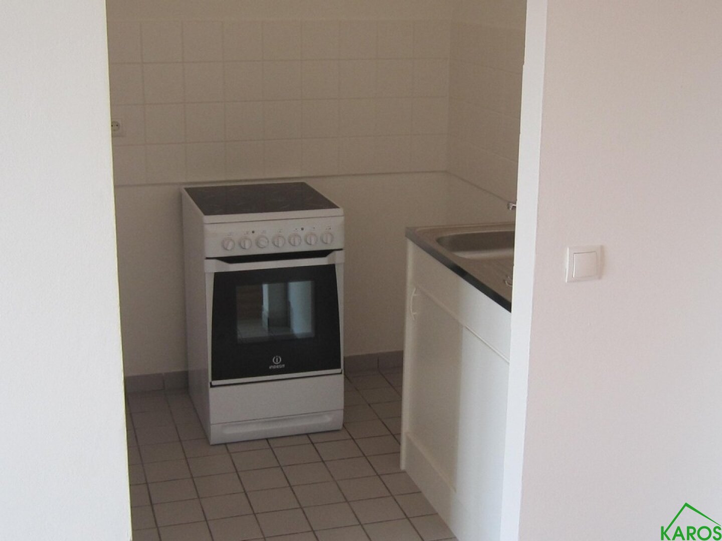 Sowohl Vorraum, als auch Kochnische und Bad sind mit neutralen Fliesen und