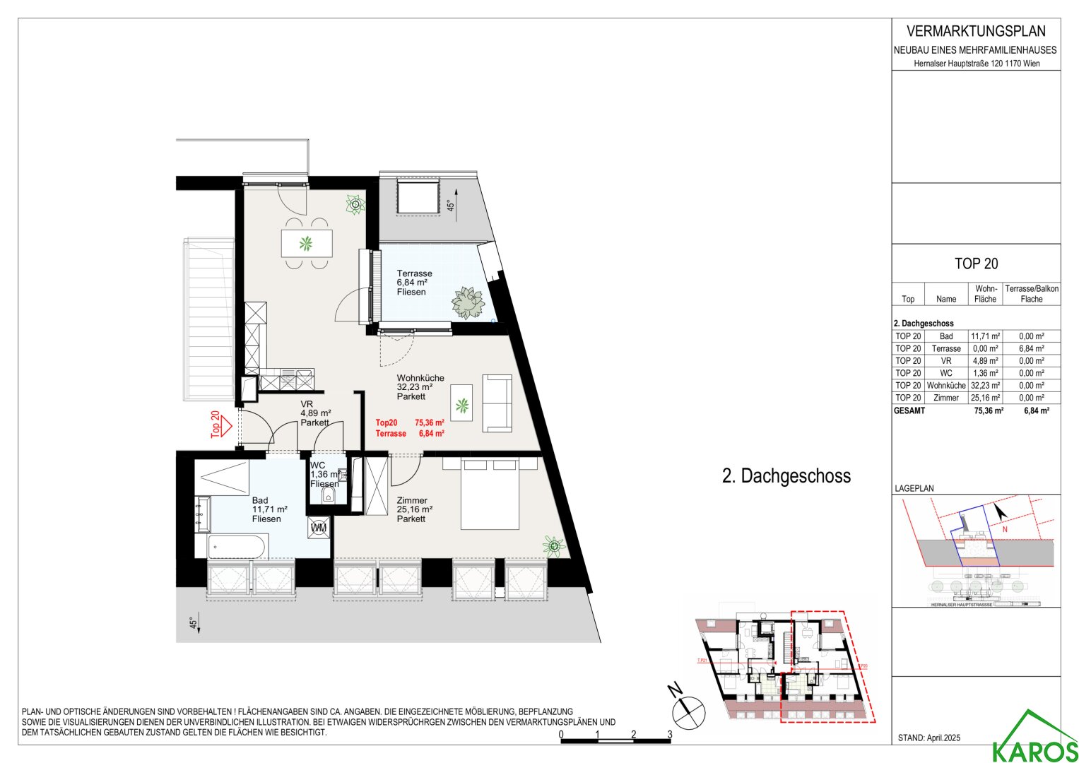 Kerndaten: 75,36 m² / 2 Zimmer / 1170 Wien / Gesamtmiete brutto: € 1.853,74