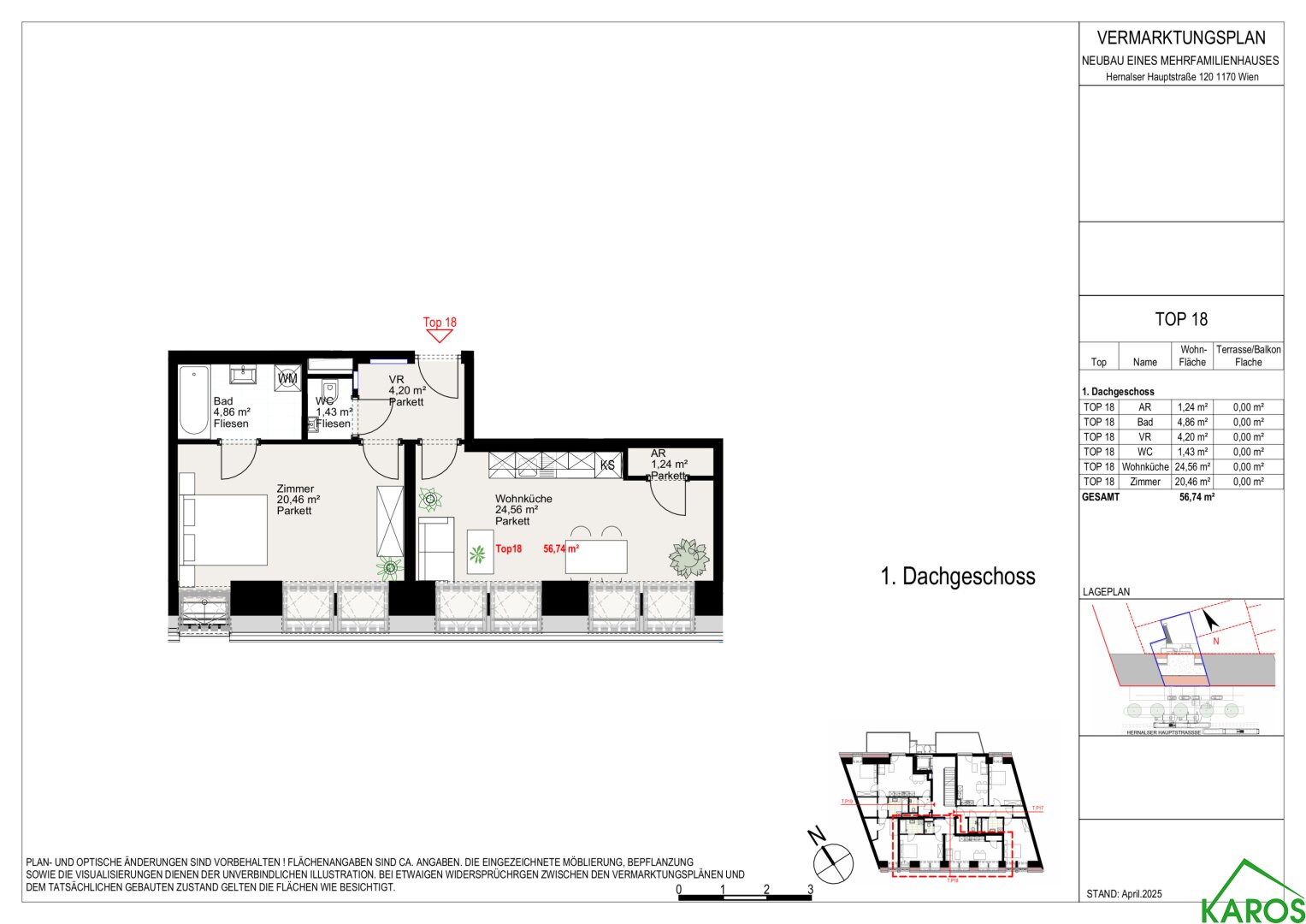 Kerndaten: 56,74 m² / 2 Zimmer / 1170 Wien / Gesamtmiete brutto: € 1.279,49