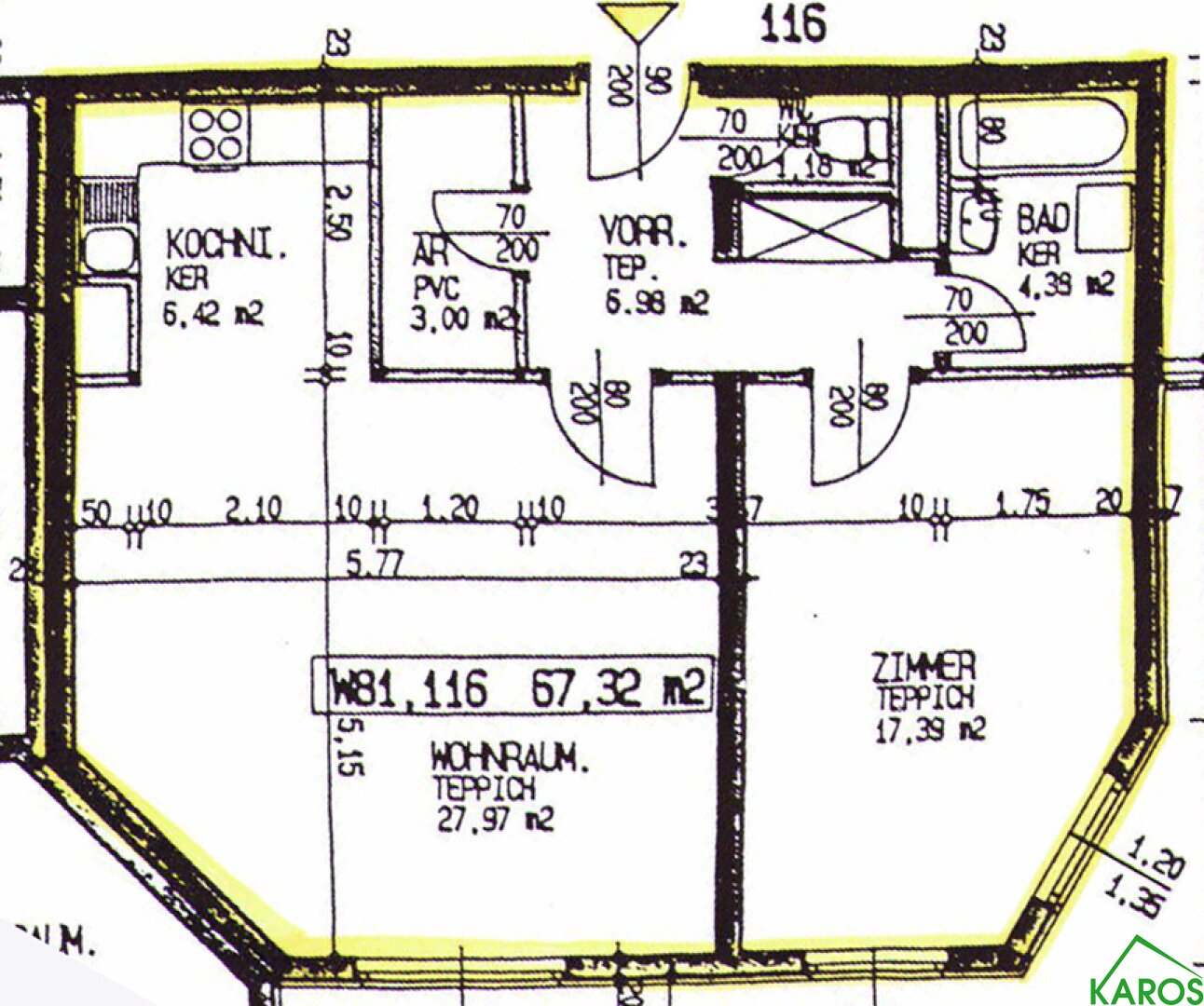 Die 2-Zimmer-Wohnung im Ausmaß von 66,84 m², befindet sich im 3. Liftstock mit Blick auf den Waldmüllerpark.